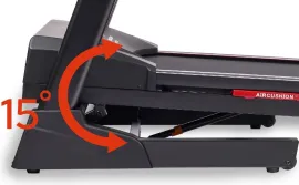 Скорость разгоняющего дорожку постоянного тока составляет внушительные 16 км/ч при 25 литрах. Полотно для бега имеет размеры 138 см в длину и 46 см в ширину, что обеспечивает безопасность передвижения на любой скорости. Угол наклона можно программировать электрически в диапазоне от 0 до 15%, что увеличивает нагрузку и общую эффективность тренировки, особенно при использовании интегрированных тренировочных программ. Важную роль в управлении играет многослойное полотно NNT-218 с 2,8 мм слоем парафинированной бумаги от швейцарского бренда Habasit. Система амортизации air-CUSHION™ от VCS обеспечивает самый высокий уровень профессионализма за счет минимальной нагрузки на суставы и позвоночник. Удобная гидравлическая двухфазная система easy-DROP™ значительно упрощает складывание дорожки, обеспечивая медленное и безопасное опускание полотна. Для перемещения дорожки используются 2 транспортировочных ролика. Привод оснащен надежным 7-дюймовым сенсорным TFT экраном с полной русификацией и мощным двигателем Fuji мощностью 3.