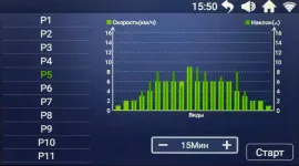 Показатели компьютера: программный профиль, время, дистанция, скорость, угол наклона, калории, пульс