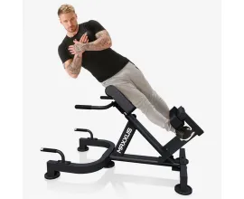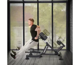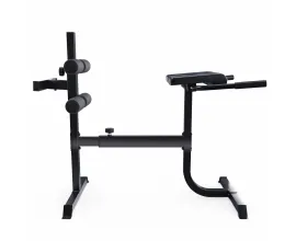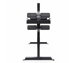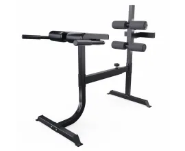 Тренажёр оснащён спинкой из плотного пеноматериала (30×19,5×8 см) и удобной подушкой для ног (39×12×8 см), которые обеспечивают комфорт и надёжную фиксацию во время выполнения гиперэкстензий. Встроенные рукоятки для отжиманий расширяют спектр упражнений, добавляя возможность проработки верхней части тела.
