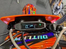 Nine Fox Outlaw NB300 — выбор райдеров, ценящих острые ощущения и спортивный характер мотоцикла. В его основе лежит высокооборотистый двигатель NB300, настроенный на резкую, динамичную отдачу. Сердце Outlaw — современный агрегат ZS 174MN-5A объемом 279.6 см³. Жидкостное охлаждение поддерживает стабильную температуру даже при интенсивной езде. Мощность 27 л.с. в паре с карбюратором NIBBI SPORT PWK34 гарантирует мгновенную реакцию на газ. 6-ступенчатая трансмиссия позволяет точно подбирать передачу для любых условий. Регулируемая подвеска HTW адаптирует байк под разный рельеф, а дорожный просвет 315 мм обеспечивает отличную проходимость. Премиальные покрышки Kenda и надежная дисковая гидравлика гарантируют полный контроль. При весе в 123 кг мотоцикл сохраняет устойчивость, оставаясь послушным в управлении.