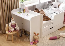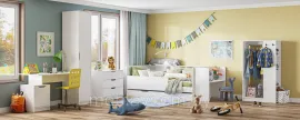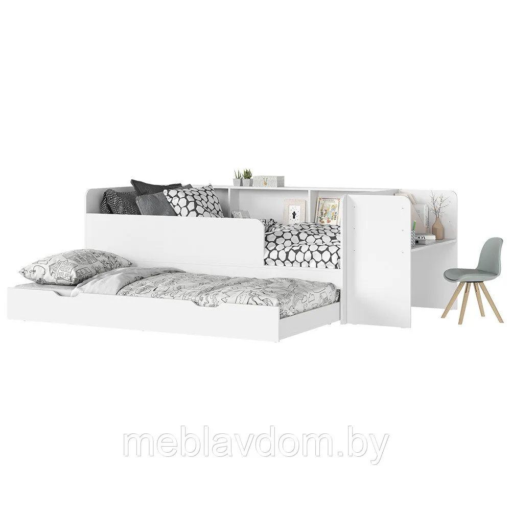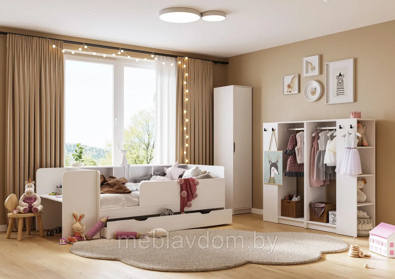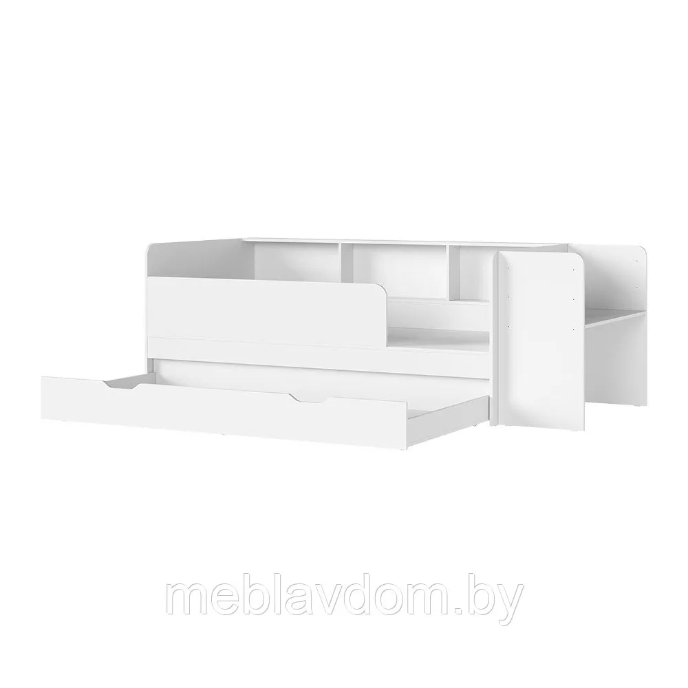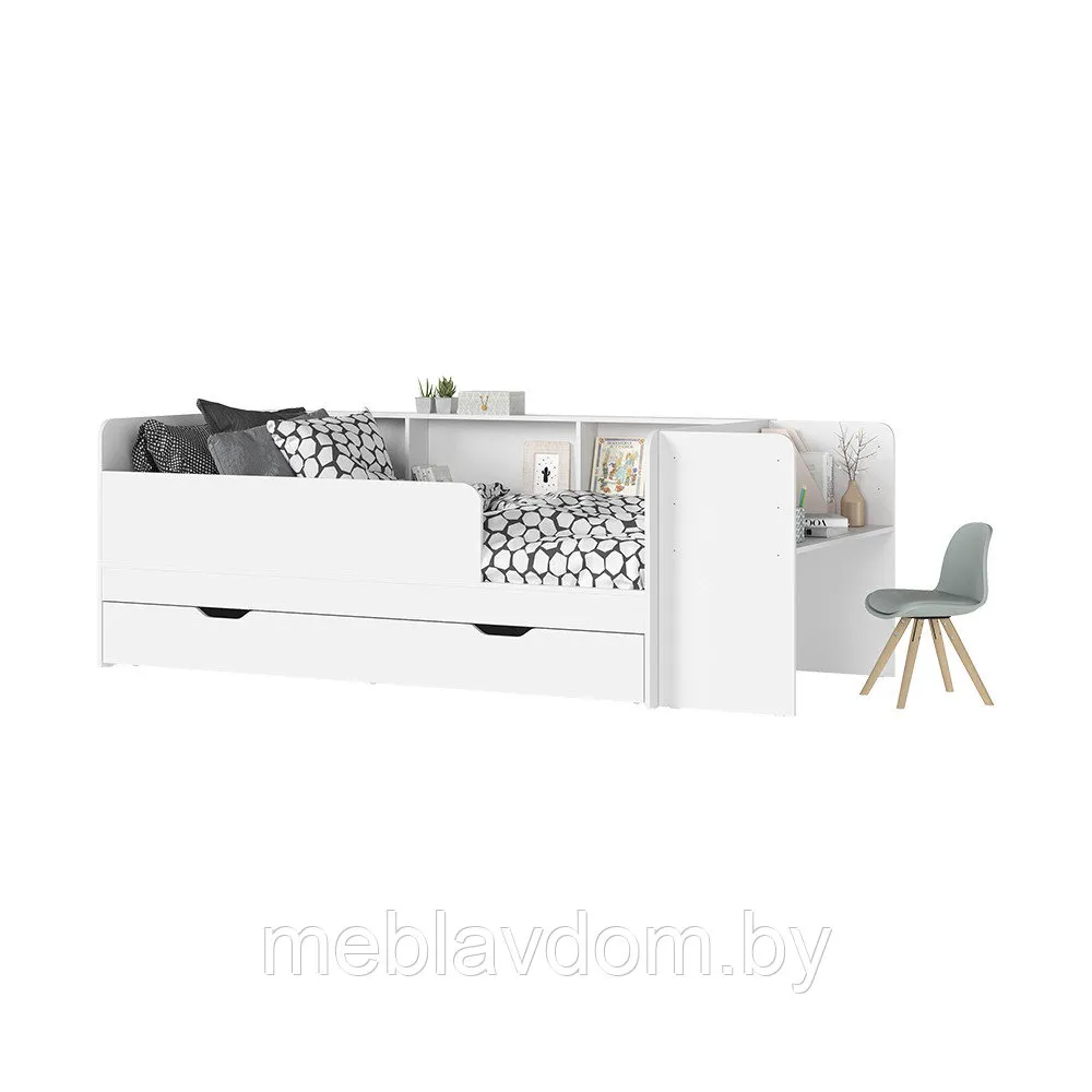 Детская кровать "Ивис" — это практичное и элегантное решение для детской или подростковой комнаты. Она оснащена просторным односпальным местом, которое обеспечивает комфортный сон, выдвижными ящиками для хранения постельного белья и открытыми полками для книг или декоративных предметов. Фотопечать на фасаде, имитирующая вертикальную фрезеровку, придаёт комнате особый шарм. Сочетание цветов "Дуб Крафт золотой" и "Белый" не только визуально увеличивает пространство, но и создаёт атмосферу уюта и тепла.