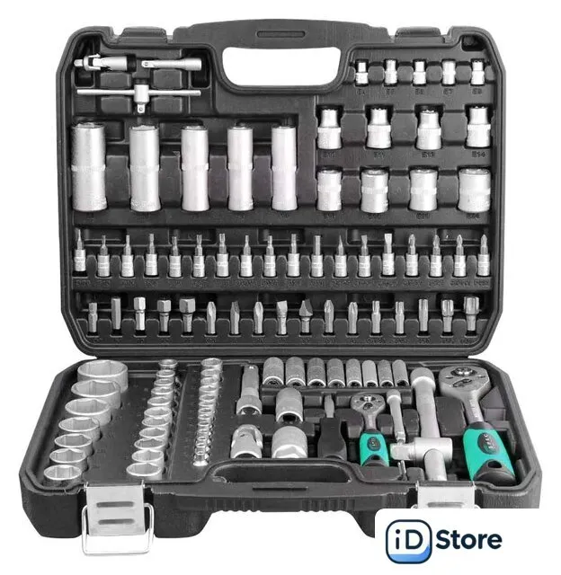 универсальный набор, 1/4", 1/2", 108 предметов. Доставим по Минску в день заказа, при оформлении заявки до 14.00. Официальная гарантия.