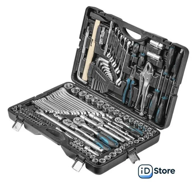 универсальный набор, 1/4", 3/8", 1/2", 142 предмета. Доставим по Минску в день заказа, при оформлении заявки до 14.00. Официальная гарантия.