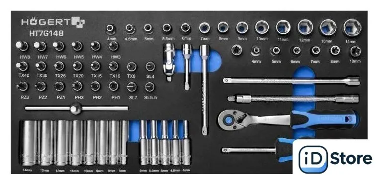 универсальный набор, 1/4", 63 предмета. Доставим по Минску в день заказа, при оформлении заявки до 14.00. Официальная гарантия.
