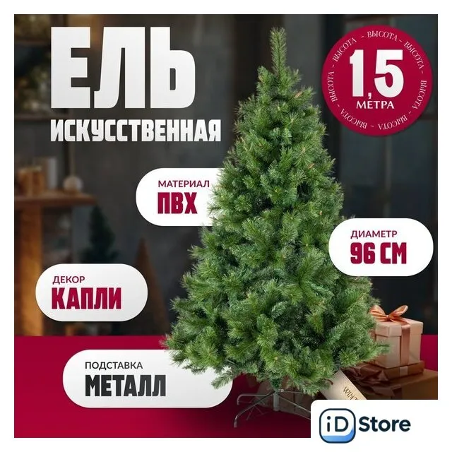 искусственная ель, литая+ПВХ, 1.5 м, цвет зеленый. Доставим по Минску в день заказа, при оформлении заявки до 14.00. Официальная гарантия.