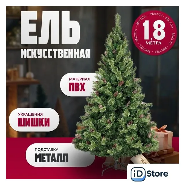 искусственная ель, ПВХ, 1.8 м, цвет зеленый, шишки. Доставим по Минску в день заказа, при оформлении заявки до 14.00. Официальная гарантия.
