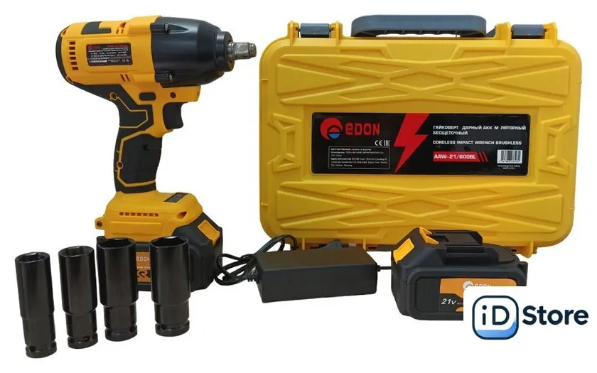Гайковерт Edon AAW-21/600BL (с 2-мя АКБ, кейс, набор оснастки)
