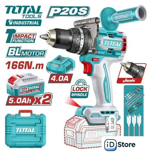 Ударная дрель-шуруповерт Total TIDLI201668 (с 2-мя АКБ, кейс)