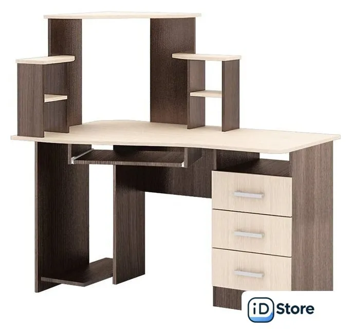 стол для работы, угловая форма, полка для клавиатуры, 1300x800 мм, высота 1300 мм, материал: ЛДСП (столешница), ЛДСП (опоры). Доставим по Минску в день заказа, при оформлении заявки до 14.00. Официальная гарантия.
