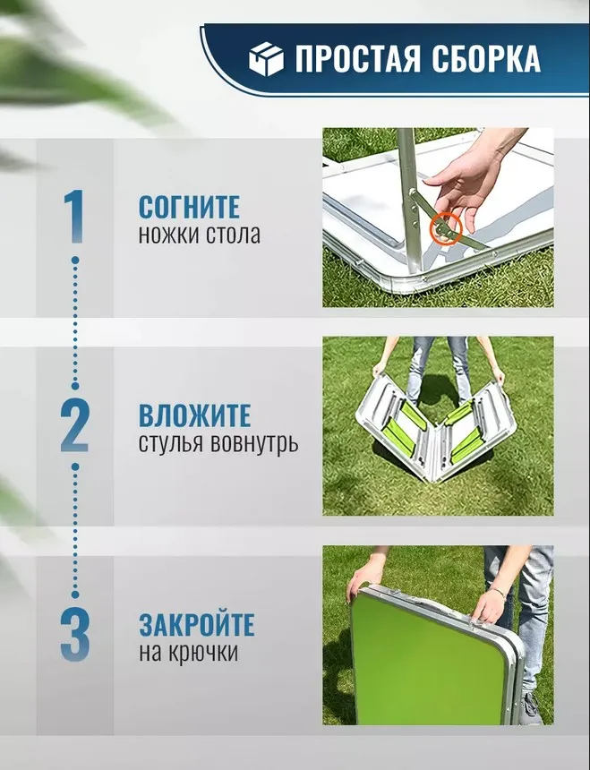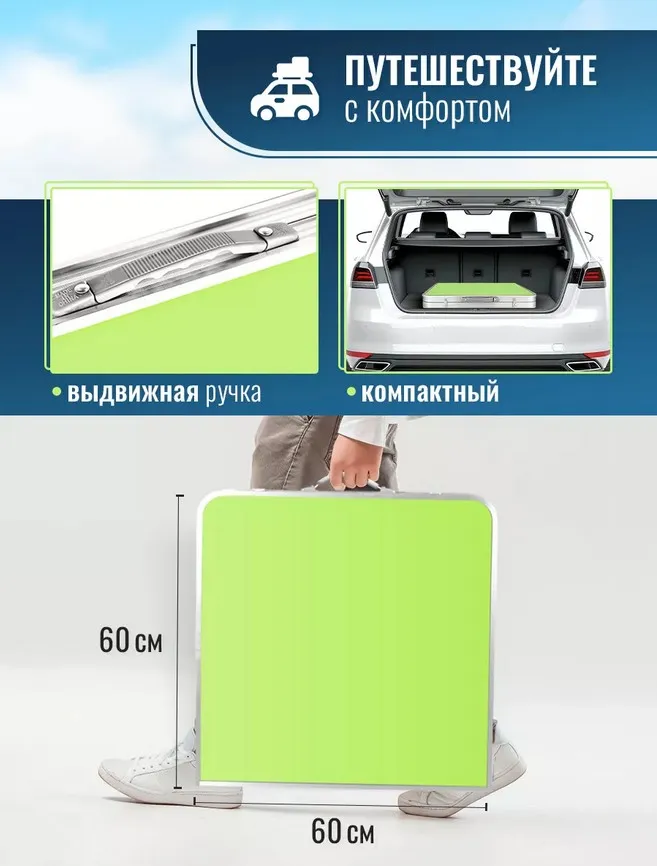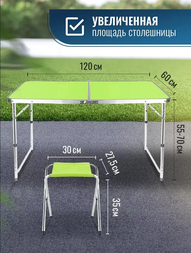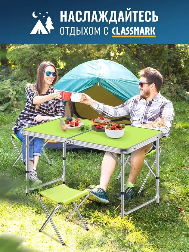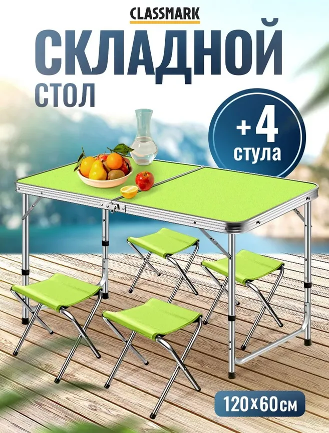 Стол туристический Classmark, 4 стула, 120x60x70см (зеленый)
