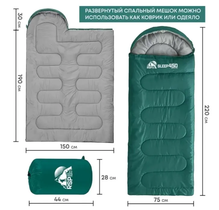Спальный мешок RSP Sleep 450 — это легкая и компактная модель для сна на природе, рассчитанная на использование с ранней весны до поздней осени. Малый вес и небольшой объем в упаковке делают его удобным для автомобильных путешествий, пеших походов и велопрогулок. Спальник выполнен в форме одеяла — такая конструкция считается наиболее комфортной, не сковывает движения и позволяет принять удобную позу для сна. Двухсторонняя молния дает возможность полностью расстегнуть мешок и использовать его как большое одеяло или подстилку.