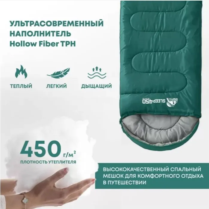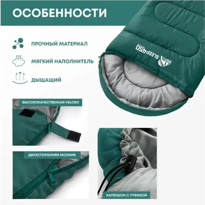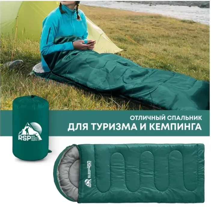 Спальный мешок RSP Sleep 450 L RipStop 2024 (зелёный, 22075см, молния слева)