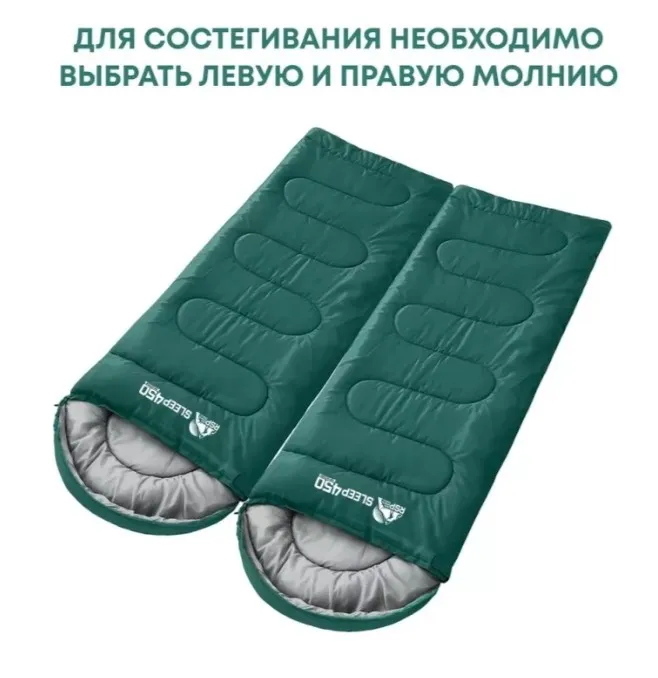 Два спальника с разным направлением молнии можно состегнуть между собой, получив один большой шириной 150 см — в таком варианте комфортно разместятся двое взрослых или двое с ребенком.