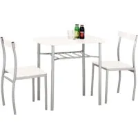 обеденная группа, прямоугольная, 2 стула, 820x500 мм, высота 750 мм, материал: МДФ (столешница), окрашенная сталь (опоры), белый. Возможны дополнительные скидки : при заказе комплекта из нескольких наименований, при повторной покупке в нашем магазине