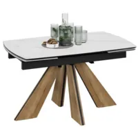 Кухонный стол Трия Палмер Тип 1 (черный муар/дуб галифакс нат/керамика матовая белый мрамор)