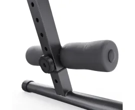 Ключевыми особенностями являются регулировки, позволяющие адаптировать скамью под индивидуальные параметры: угол наклона регулируется на 4 уровня, верхние валики — на 3 уровня, нижние — на 4 уровня. Это обеспечивает правильное распределение нагрузки и комфорт во время упражнений.