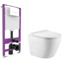 унитаз подвесной с инсталляцией, задний подвод воды, горизонтальный выпуск, двухрежимный слив, с сиденьем, безободковый. Возможны дополнительные скидки : при заказе комплекта из нескольких наименований, при повторной покупке в нашем магазине